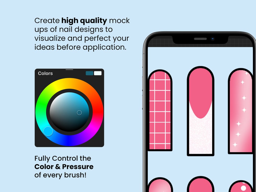 ✔ Glitter Brush – Create stunning glitter textures for realistic nail designs